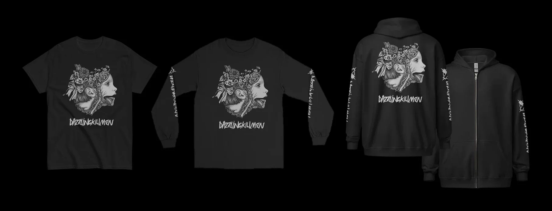 Released with the poster is a line of apparel using the Dissected Bouquet illustration. Printed in light grey, it is available in shirt, long sleeve, and hooded sweatshirt. The apparel will be available at the tour shows and also from Shirt Killer.
